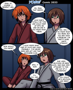 Wednesday will be filler for some reason… What could it be… Anyways! Don’t forget to check out my new comic! It’s great and updates once a week on Wednesday over at Artificial Incident! If you like Yosh! you’re bound to like Artificial Incident! If you don’t like Yosh! you might like Artificial Incident! And yes, I am plugging my own comic hard on my own other comic! It will update on Wednesday regardless of whatever holiday Wednesday may fall on! Artificial Incident