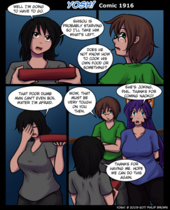 #1916 – Parting the Party #1916 – Parting the Party published on April 24th, 2017Read more posts by the author of #1916 – Parting the Party, Sage7 Comments on #1916 – Parting the Party Shisou – “The Microwave is angry” Naoko – “The Microwave doesn’t have feelings hun.” Microwave – “Excuse me?” Naoko – “O_O”